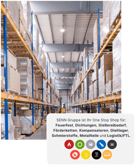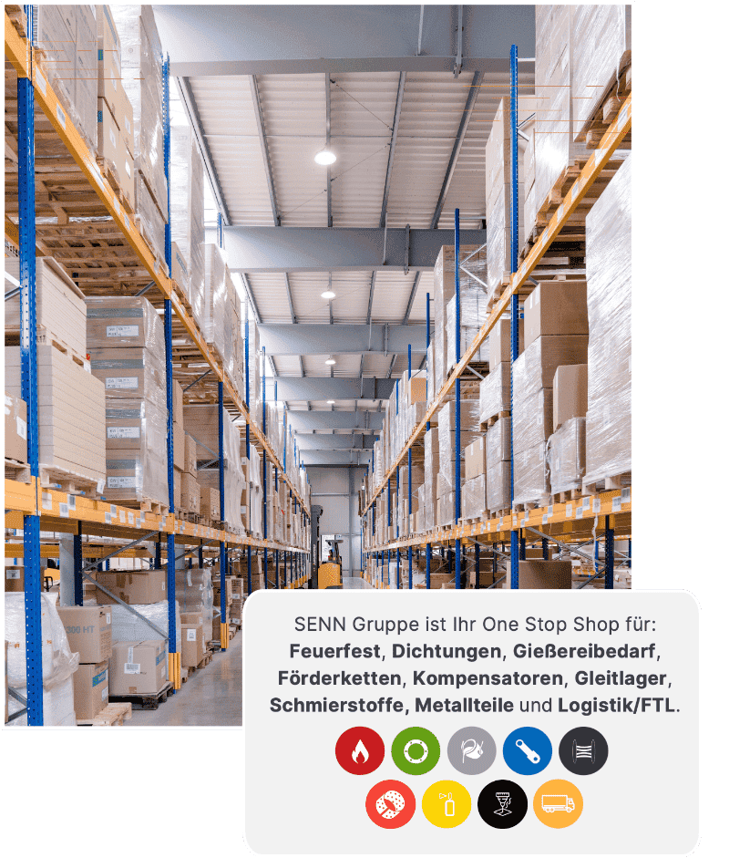 - One Stop Shop: Feuerfest, Dichtungen, Gießereibedarf, Förderketten, Kompensatoren, Gleitlager, Schmierstoffe, Metallteile und Logistik/FTL